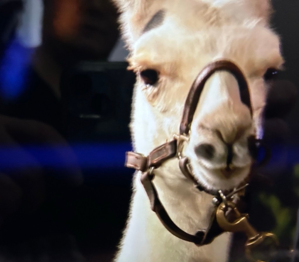 One of the craziest entrances is when a woman brings a donkey (according to Grant 🤦🏼♀️), but it’s actually an alpaca or maybe it’s a llama? 🤔 Nobody seems to know but the woman who brought her, who says it’s a no drama llama named Linda.