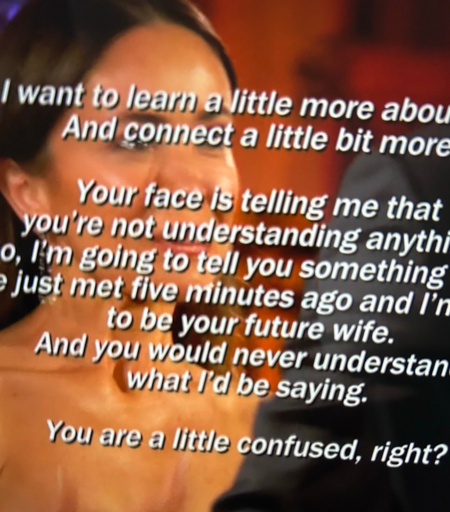 I love some of these gimmicks they do to get his attention. The first gimmick I laughed at was this one. The girl (I’m terrible with names.) is from Puerto Rico and started talking to him in Spanish. I laughed at the expression on Grant’s face (dumbfounded) and at the closed captioning onscreen.
