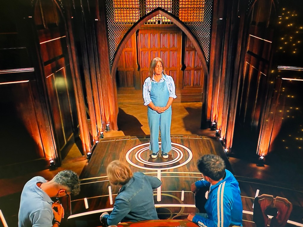 The episode begins where the first one ended. The traitors are up in the conclave deciding on who should be murdered out of three people on the secret traitor’s shortlist. They seem to be particularly giddy with excitement at committing their first murder.