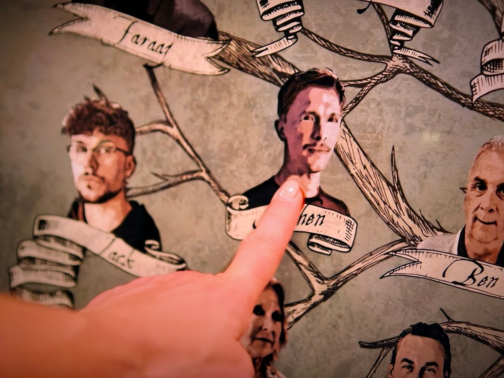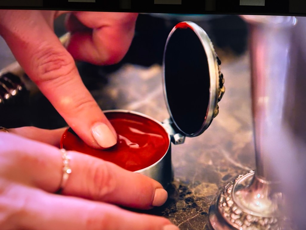 The traitors are given a task. They have to dip a finger into some red paint and dab a fingerprint onto the family tree portrait in the foyer, picking nine players. One of whom will be murdered. After completion they get to meet the secret traitor.
