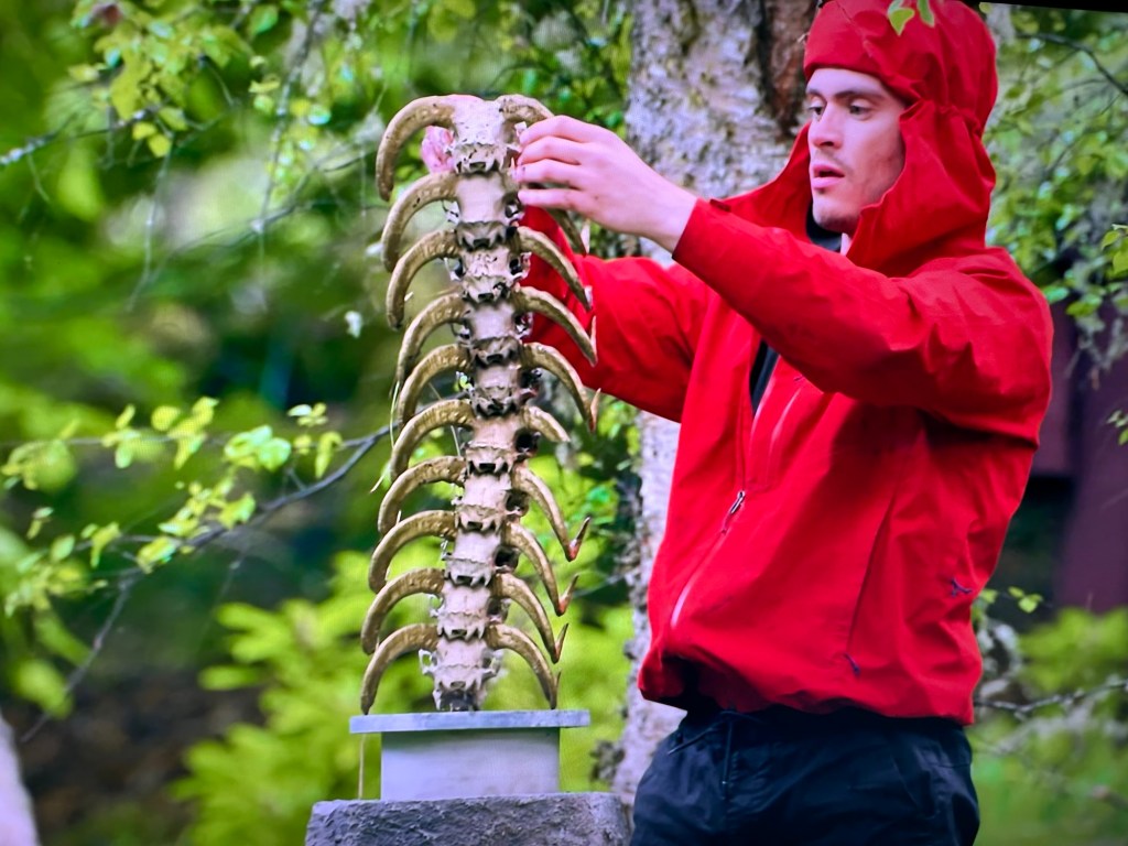 After breakfast Ellie notices the family tree painting where Rachel had placed a fingerprint in red paint on each of the nine players the traitors picked. Speculation arises about who did it and who was the last person who was seen standing by the painting. Stephen’s trying to pin it on Mas.