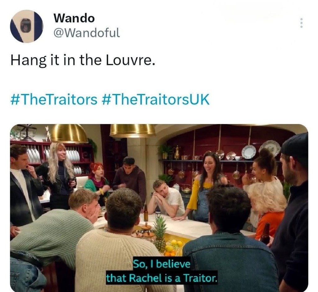 I feel like I got whiplash from Fiona and her antics. Did anybody else notice she broke one of the traitor rules? She’s supposed to keep her fellow traitors’ identity a secret, and she said it aloud in a room full of people.