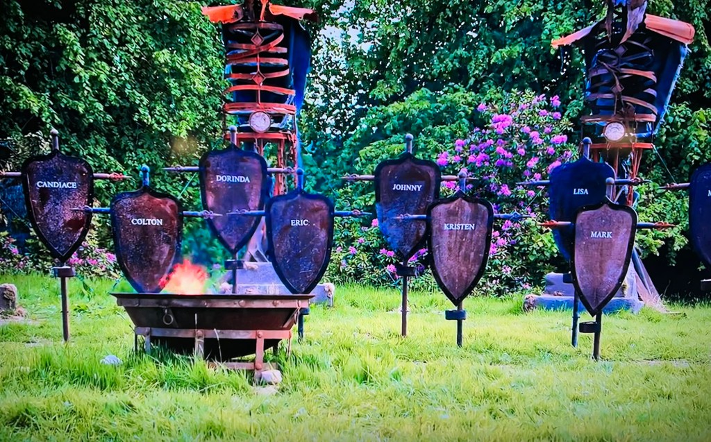 Ron is the first to enter out of those on the shortlist. He heard some footsteps while tied to the tree. He thinks there’s three traitors. Lisa arrives next. She goes under intense scrutiny when the others asked for details. She informs them the executioner had an axe and a black mask. Then Eric arrives…he reveals he heard someone laughing to the viewers in his diary room session, but doesn’t reveal the same to the rest of the players. He’s saving that info for later. Instead, he says the executioner had an axe and a leather mask.
