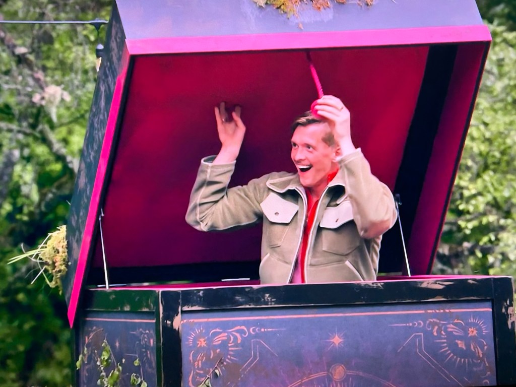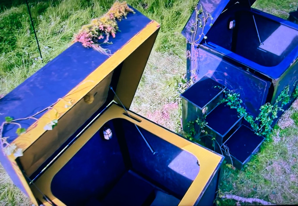 It’s mission time! Off they go to think “outside the box”. “Outside the box” isn’t what I’d think of when I see what they have to do for the mission. I think it’s more like Jack in the Box. In fact, they play the music for Jack in the Box or Pop Goes The Weasel. They have to climb into a box and answer questions. They have to match the answers with the answers the traitors provided. For each correct answer, they’ll get £250 added to the prize pot. The trick is the traitors haven’t answered the questions yet.