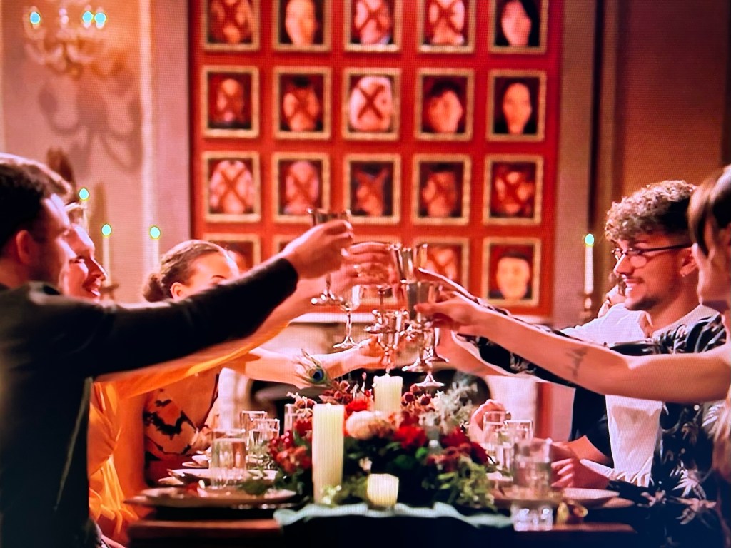 Ellie is banished. She reveals she entered the castle with another person…her boyfriend, Ross. She was honest about what’s important…she’s a faithful. Claudia tells them there’s no murder that night. And because that round table was so hard on everyone, she’s throwing them a dinner party. There’ll be lots of cheese there. They get to dress up and everything.