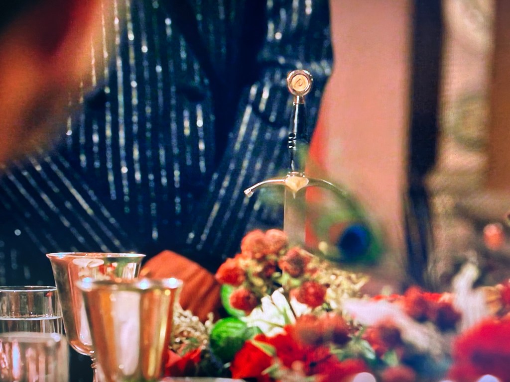 Claudia interrupts their stories. None of them are happy to see her. (Would you? She usually brings bad news.) She tells them they should be proud of themselves. There’s no murder, but the traitors will still be busy. She pulls out a dagger. It’s called the “ceremonial dagger”. She stabs the table with it.