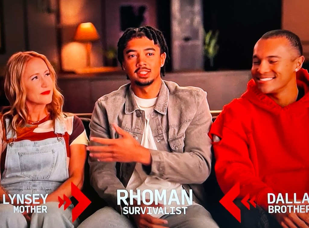 After Olsen leaves, all of the survivalists are testing out the supplies their families sent them, starting with fire. Most are satisfied, but Rhoman has no fire and therefore no water. Two things a person desperately needs. His mother feels like she failed him and runs out of the HQ room because she feels bad about not giving him those things.