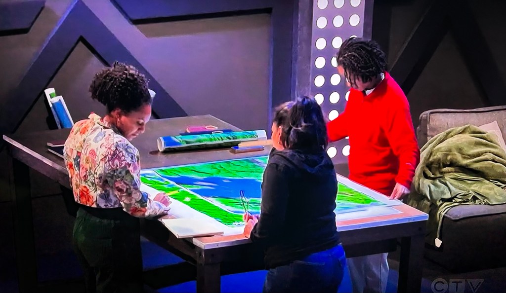 He’s told to put the blanket into a crate. Everyone else arrives at HQ just in time to watch the crate get air dropped by a drone into his brother’s camp. Messy! Now everybody knows what he’d been up to. His brother is like, WTF? And still half asleep. The best part IMO is David’s plan to frame Sandra failed. Everybody knows it was him.