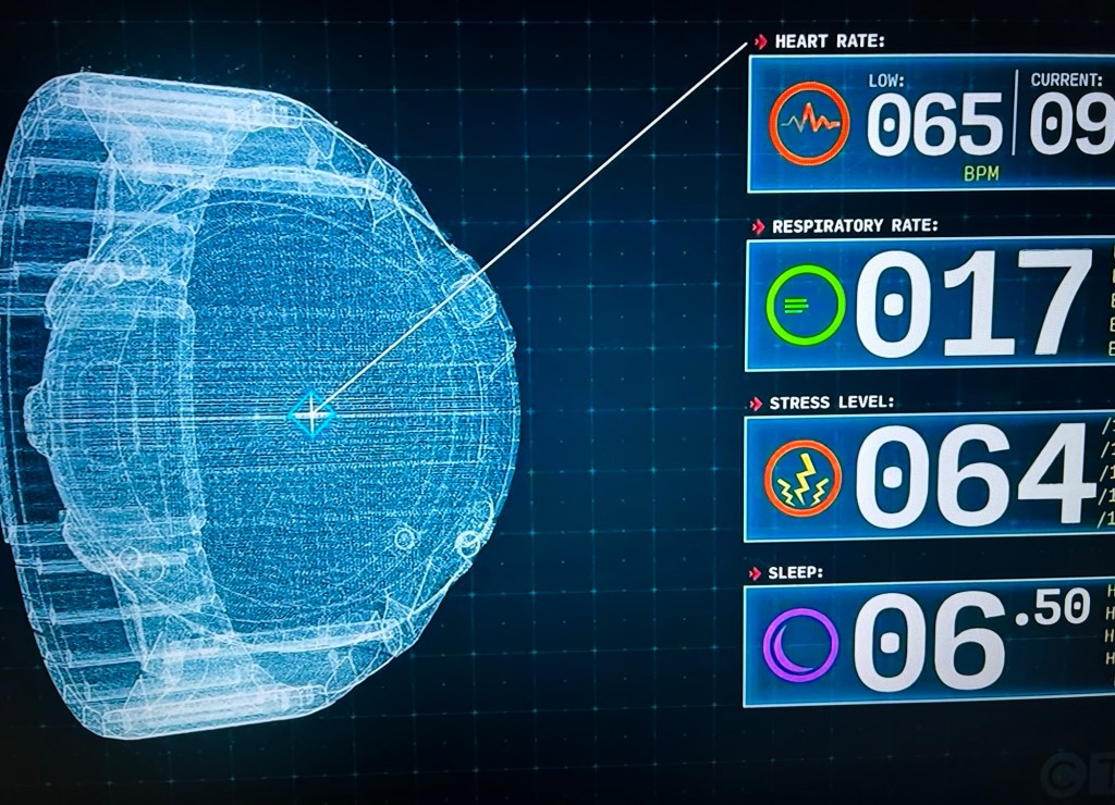 They’re told about the smart watches that keeps track of their survivalist’s health.