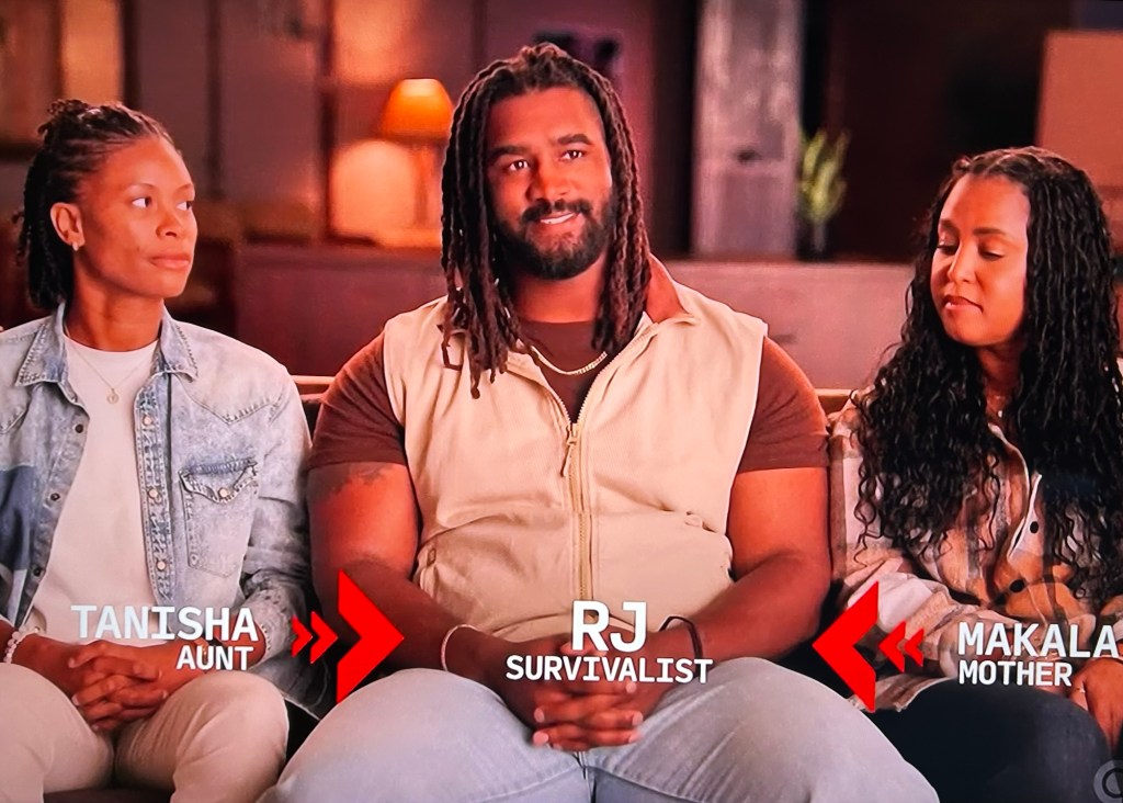 We’re first introduced to Amey (cool spelling) the survivalist, with her husband, Skyler, and uncle/adopted dad, Trung in HQ. Amey thinks her husband will press the extract button before she will. Then, we’re introduced to twins, Molly and Polly (survivalist) and Molly’s daughter, Bailey. They think their twin connection will give them an advantage in the game. Later on we’re introduced to survivalist RJ, and his mom Makala and his aunt Tanisha. He used to play college football but has had numerous ACL surgeries, which led to his football career ending.