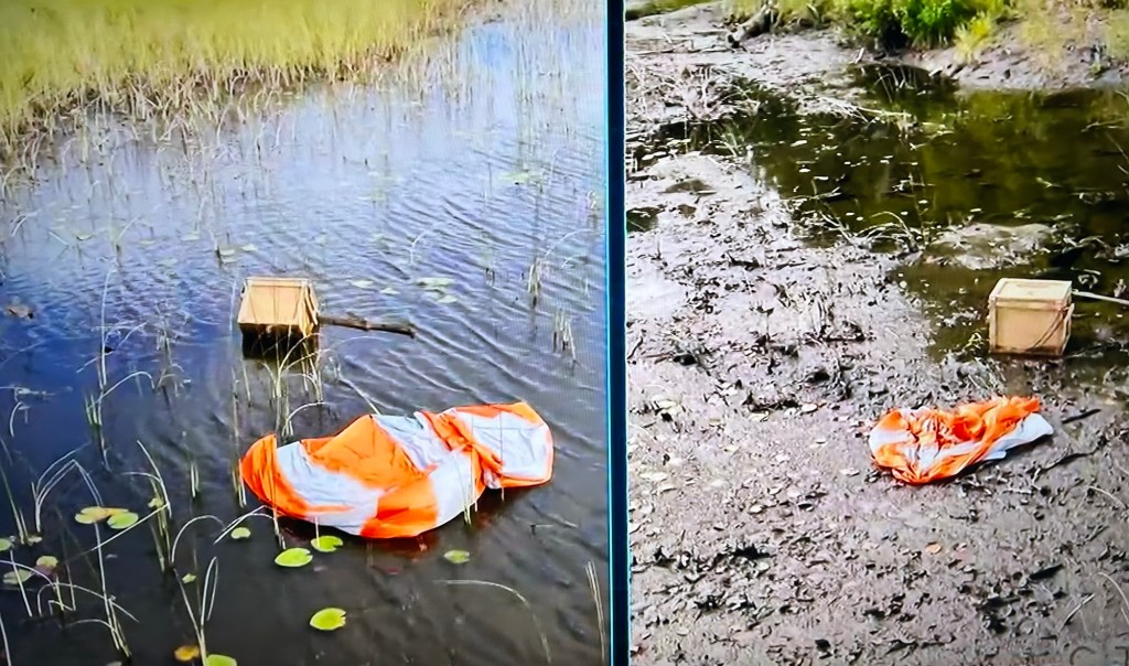 The survivalists each receive maps leading to their respective crates. Along the way while hiking through dense terrain, they meet the other survivalists. Soon, they arrive at a swamp. They have to wade into muddy, swampy water to get to the crates.