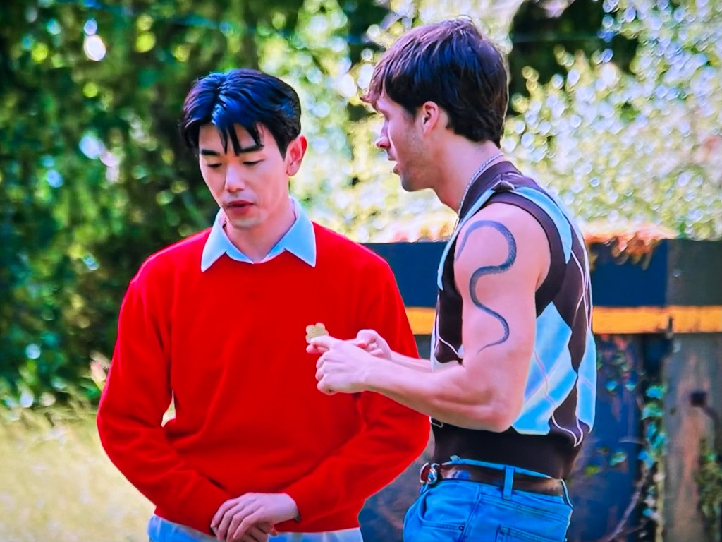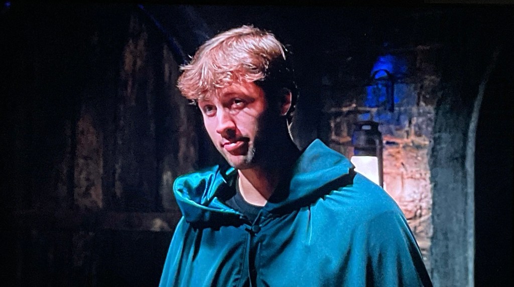 Eric agrees to be a traitor. Rob gives him his robe. It’s cute how Rob helps Eric adjust his robe. Rob then tells him they have to commit a murder right now. Eric’s like right now? You can tell Eric is shell shocked and everything’s coming at him all at once. He tells us he needs a helmet and an adult diaper because he’s going to shit his pants and his head is going to explode. If you guessed Eric in the beginning, you get a gold star! ⭐️ Eric asks do they have to murder someone? Rob says they have to. It’s their job.