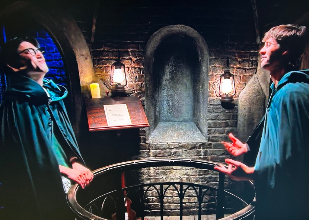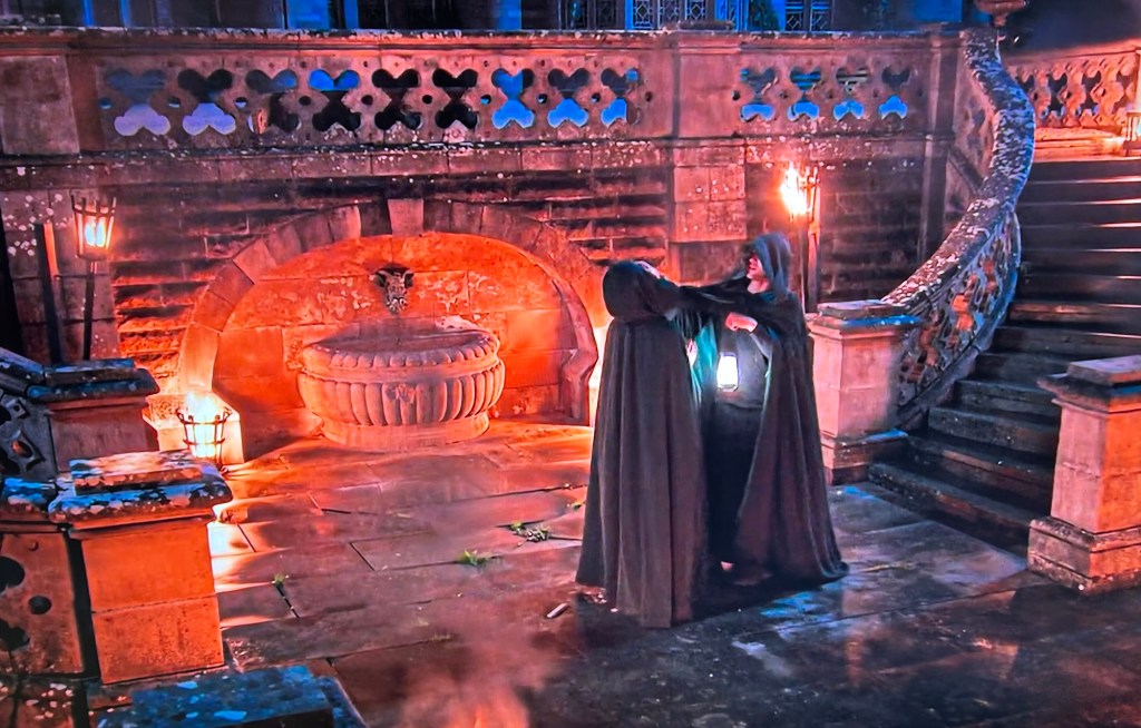 Up in the turret they run through their shortlist. Dorinda, Stephen and Natalie. They seal the envelope and walk out of the turret with Rob telling Eric he looks like Harry Potter but more like the Slytherin kind. 🤣🤣🤣