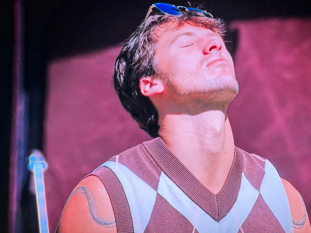 Rob is an eagle soaring across the sky. This guy is laying down with his cropped top vest on, hands behind his back. And I’m trying to sit there and be normal and it’s really hard. ~ Eric