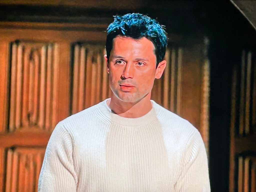 After Alan asks if the dagger is going to be used, Natalie pleads with Rob to admit he has it. She’s up for murder after all. He whispers that he has it. I know from Maura’s expression, that she heard. She has to suspect Rob by now, right? She’s giving nothing away as to what she thinks but her facial expressions kill me regardless.