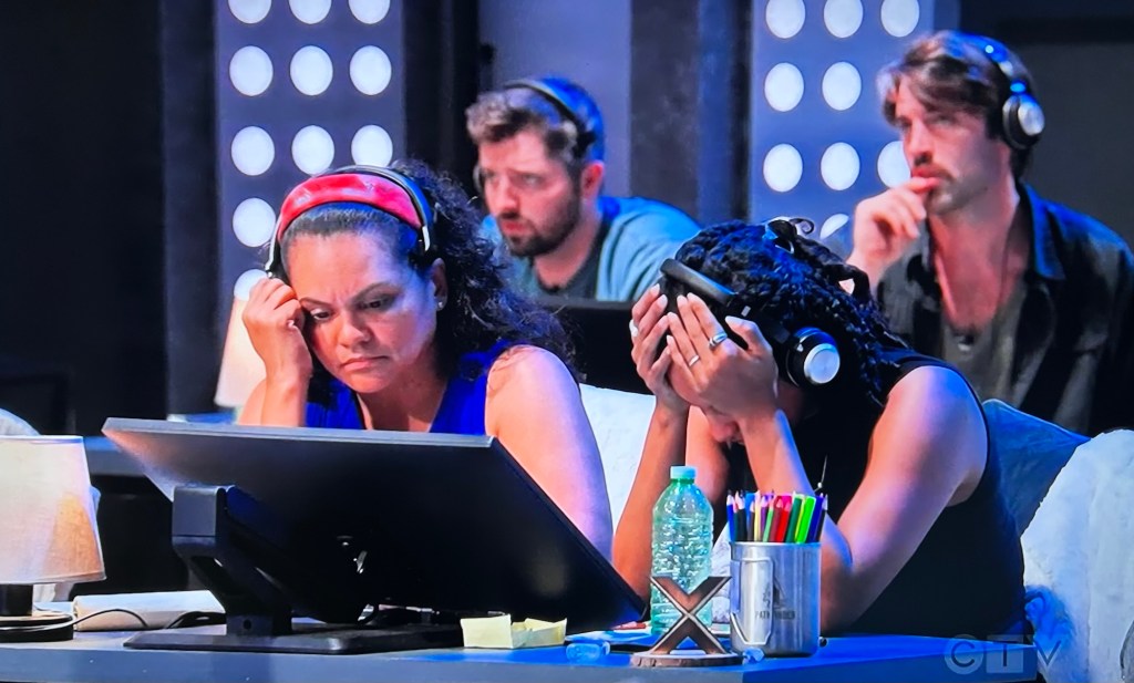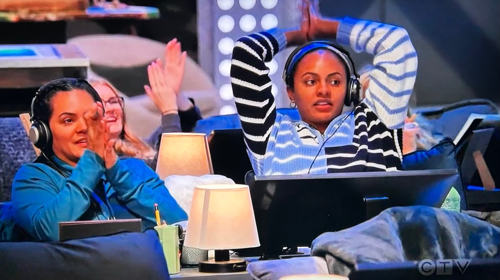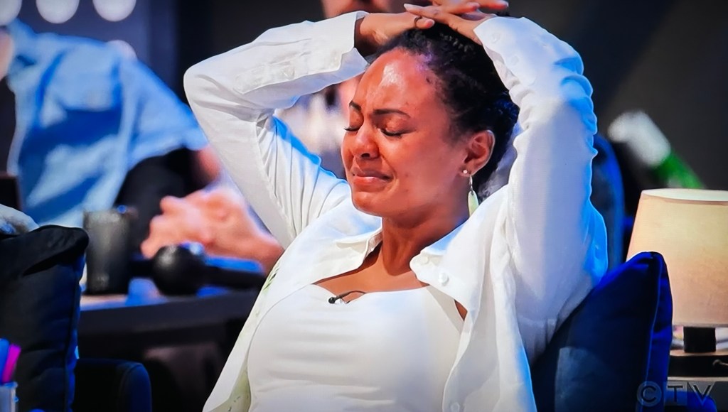 Back at HQ, Nina says in their ten years together, they had only camped once for twenty-four hours. Sandra says Eric’s only motivated to get off the couch to go out to restaurants and go shopping for sneakers. 🤭🤣 Sandra says if he doesn’t win, she doesn’t want to be on the same plane as him.