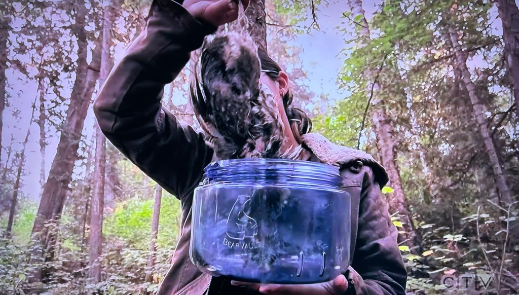 Rhoman also has issues with the grouse. He had put it into the pot and put it in the lake to keep cool overnight, but the pot leaked, so his bird got wet. He doesn’t want to eat it now because it stinks. His brother thinks a lot of people are too soft nowadays and Rhoman is a dumbass.