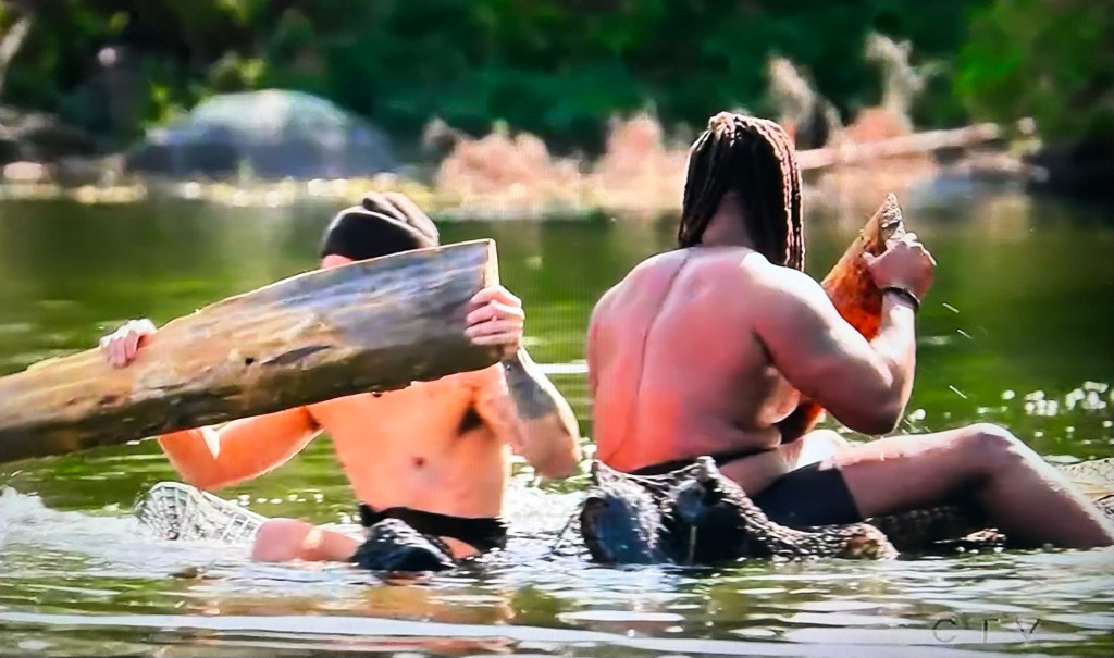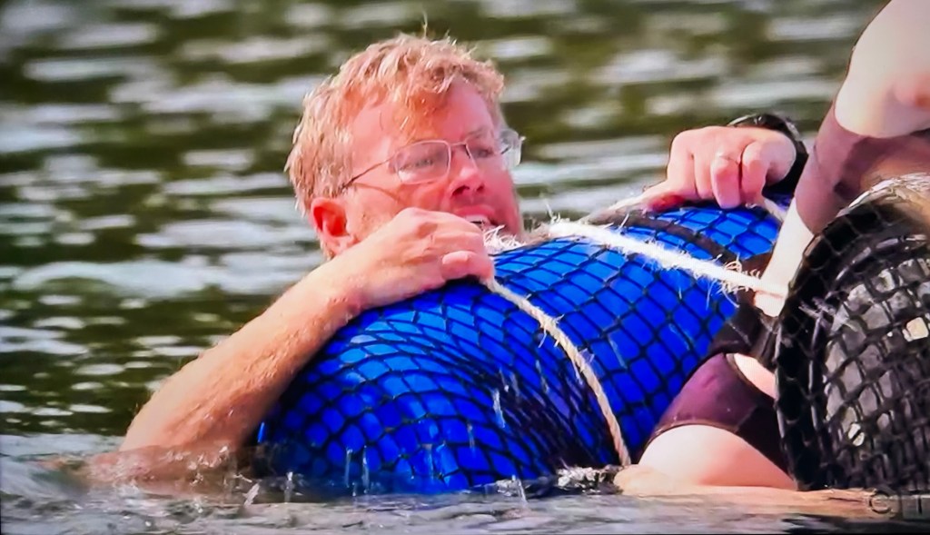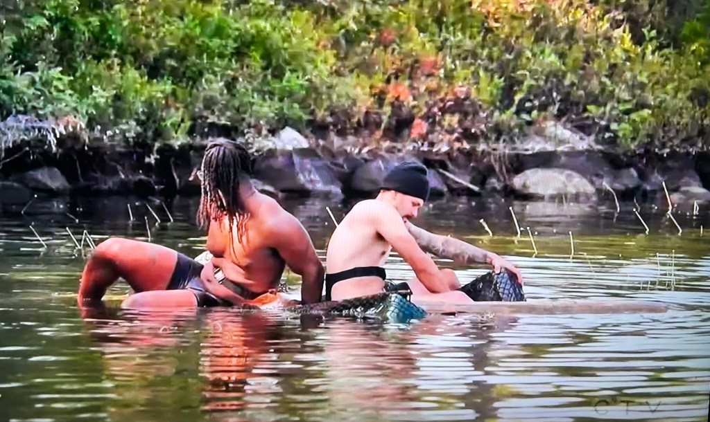 RJ and Eric decide not to read the instructions and left some floatation devices behind. (These two are a train wreck from start to finish.) They were actually spinning in circles after they did get their raft in the water because they couldn’t paddle correctly. 🤣😭🤭 I found it hilarious. Sandra and Nina in particular, did not.