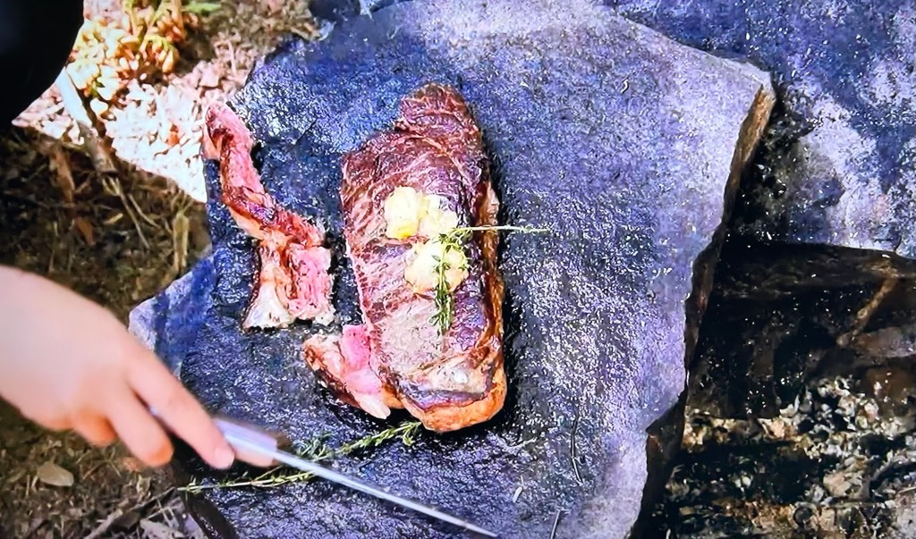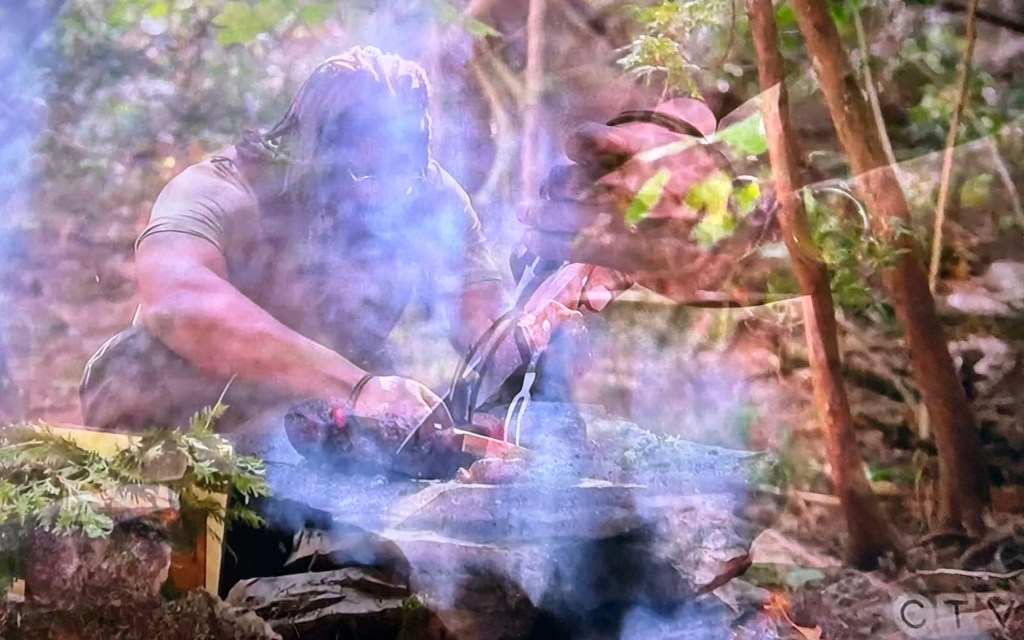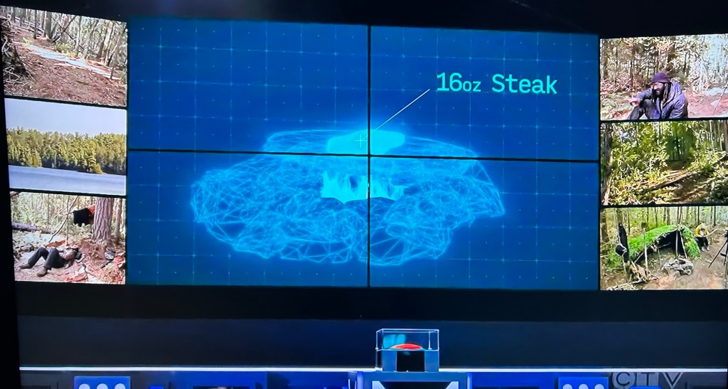 Time for a survival trial! The survivalists get a freshly cooked, sixteen ounce, juicy steak! The catch is…they have to share it with all of the other survivalists. Each survivalist takes as much as they need to win, one by one, until each survivalist has eaten. They won’t know how many have eaten before them, or how many will get to eat after. (They had this same trial during the first season.)
