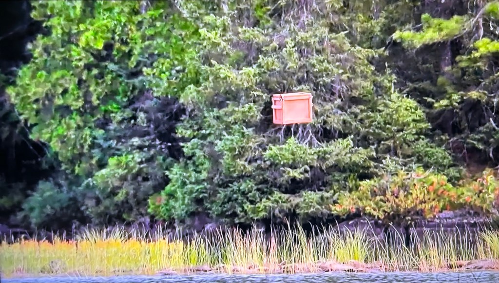 The fifth episode titled, “A Juicy Power Play” begins with some bears getting a little too close to Amey’s camp. She can hear their footsteps. We can see a glimpse of them (there’s two) on the cameras and can hear them snorting. Amey uses her blow horn to scare them away. Doug and RJ can hear her horn go off. Doug knows that means there’s bears in the area.