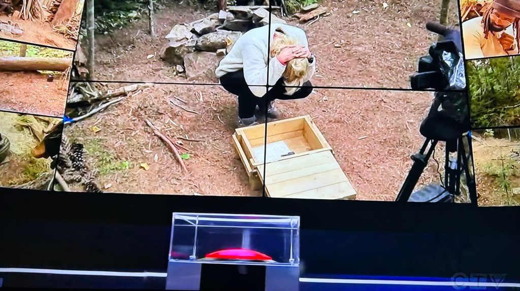 Later on, when the power card is brought into play, the families in HQ find out when the survivalists receive their crates. Polly’s sister, Molly and her niece, Bailey are devastated. Polly has no matches and now, no sleeping bag. She literally has no way to keep warm and it’s going down to 30°F that night. Polly apologizes for taking too much steak—assuming that’s why that was done to her.
