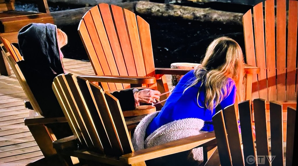 Afterwords, the girls (Emily and Carly) refuse to look at Molly and Bailey, until Bailey somehow finds Carly alone and gets her to agree to have a chat outside by the fire pit. Carly tells her she’ll just have to get Emily and they’ll be right there.