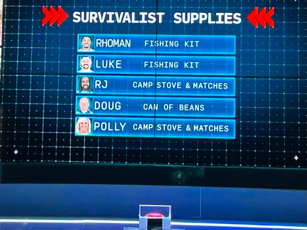 The episode begins on day eighteen. There are five survivalists left. They are; Polly, RJ, Rhoman, Doug and Luke. As if Luke read my mind, Luke wonders how many of the others are left. Polly is rationing water because she only has two matches left. Doug’s hurting everywhere. Rhoman lost his fishing hook.