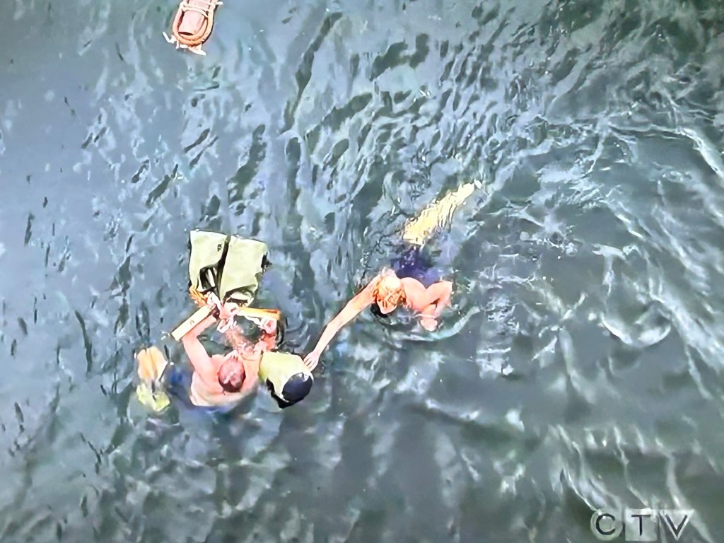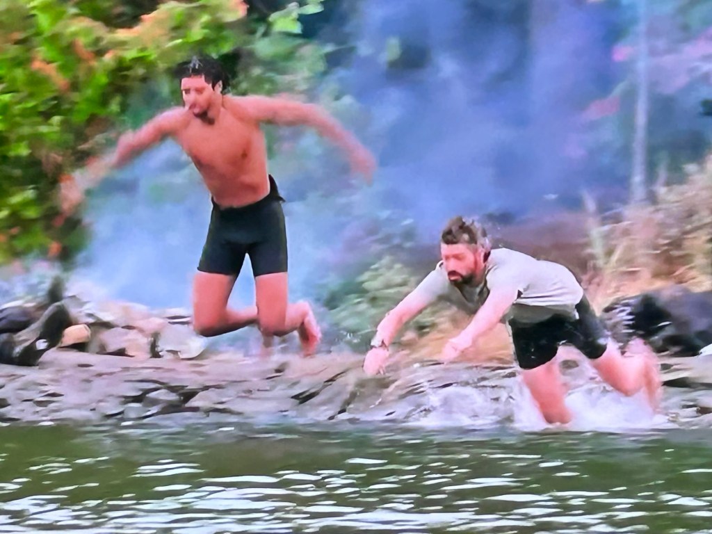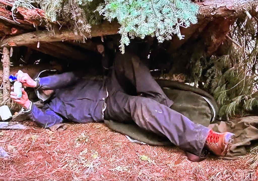 Back in camp, Luke and Doug try out their new supplies to great …correction, Luke’s success. Doug’s burner almost burned the forest down because it was turned up too high. His can of beans dumped all over the ground too. It was like watching a train wreck. Perhaps, Doug winning fire was the worst thing ever. Or best…depending on whether you like watching train wrecks or not. I personally do. 🍿