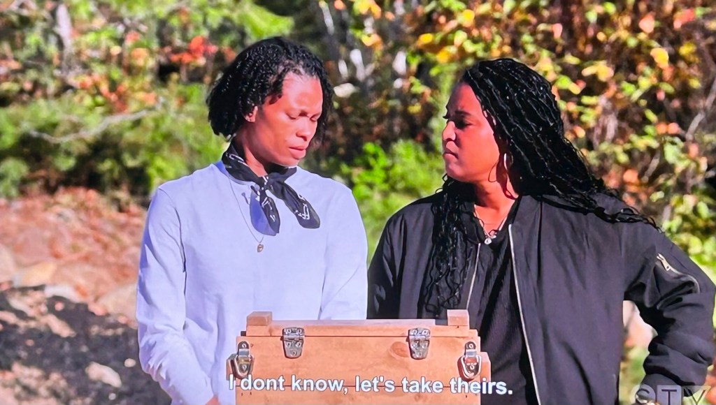 After the survivalists are on their way, RJ says if he gets an empty crate again, he wants out. Makala had wanted to use their intercept card, but Tanisha talked her out of it. So, after RJ says he’s done, she’s upset. She knew they should’ve used it.